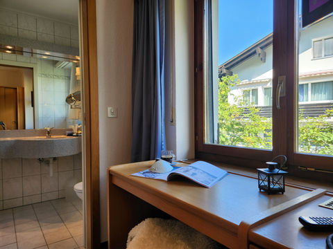 A single room in our main house, en-suite bathroom with shower, a desk, a digital tv, free Wi-Fi, a closet, hairdryer, reception/concierge services.