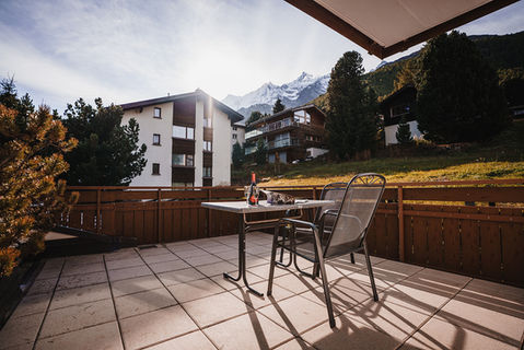 Sunny & south facing with a glacier view. Double room with two single mattresses, closet, free WIFI, minifridge, desk space, en-suite bathroom, this room is distinguished by a large terrace space with enough space to hang out outside with the family, enjoy a sunny meal, build a snow castle.